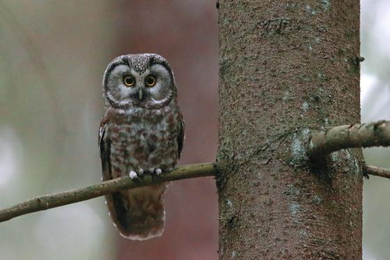 Włochatka (Aegolius funereus) występuje w naszym kraju głównie na północy oraz w górach. Tę drobną, leśną sowę charakteryzuje duża głowa oraz krępa sylwetka, a w jej upierzeniu przeważa brązowy kolor z perłowymi plamami. Jasnoszara szlara jest wyraźna, podobnie jak lekko uniesione brwi. Nazwa „włochatka” nawiązuje do suto opierzonych nóg i palców, aż do pazurów. Ten borealny gatunek najchętniej zasiedla bory świerkowe, choć zamieszkuje także stare buczyny, ale koniecznie w sąsiedztwie drzewostanów świerkowych. Niezbędny element terytorium włochatki stanowią obszary otwarte jak śródleśne łąki, czy zręby, na których sowa poluje.